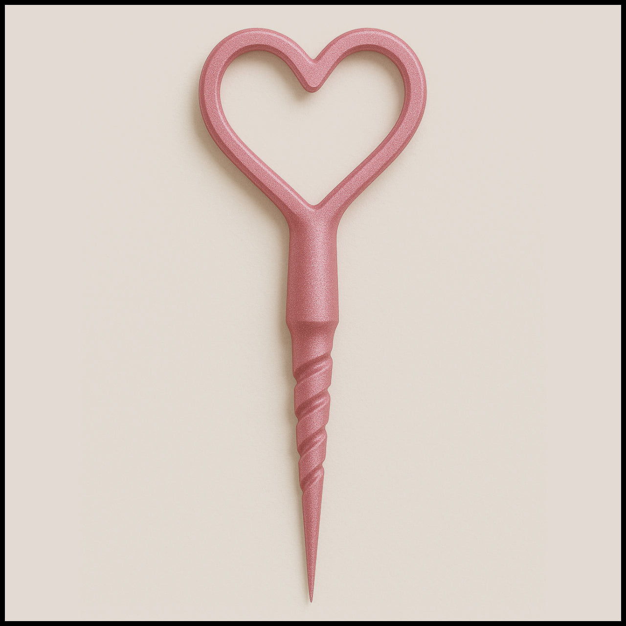 Born from the baked imagination of two lovers, this handheld debowler tool blends artistry and function into a single, elegant form. Inspired by the shape of a narwhal horn and crowned with an open-ended heart, it symbolizes connection, creativity, and shared moments. Crafted entirely from metallic pink stainless steel, it’s sleek, durable, and designed for those who appreciate the beauty in every detail — a little piece of passion forged into practicality.
