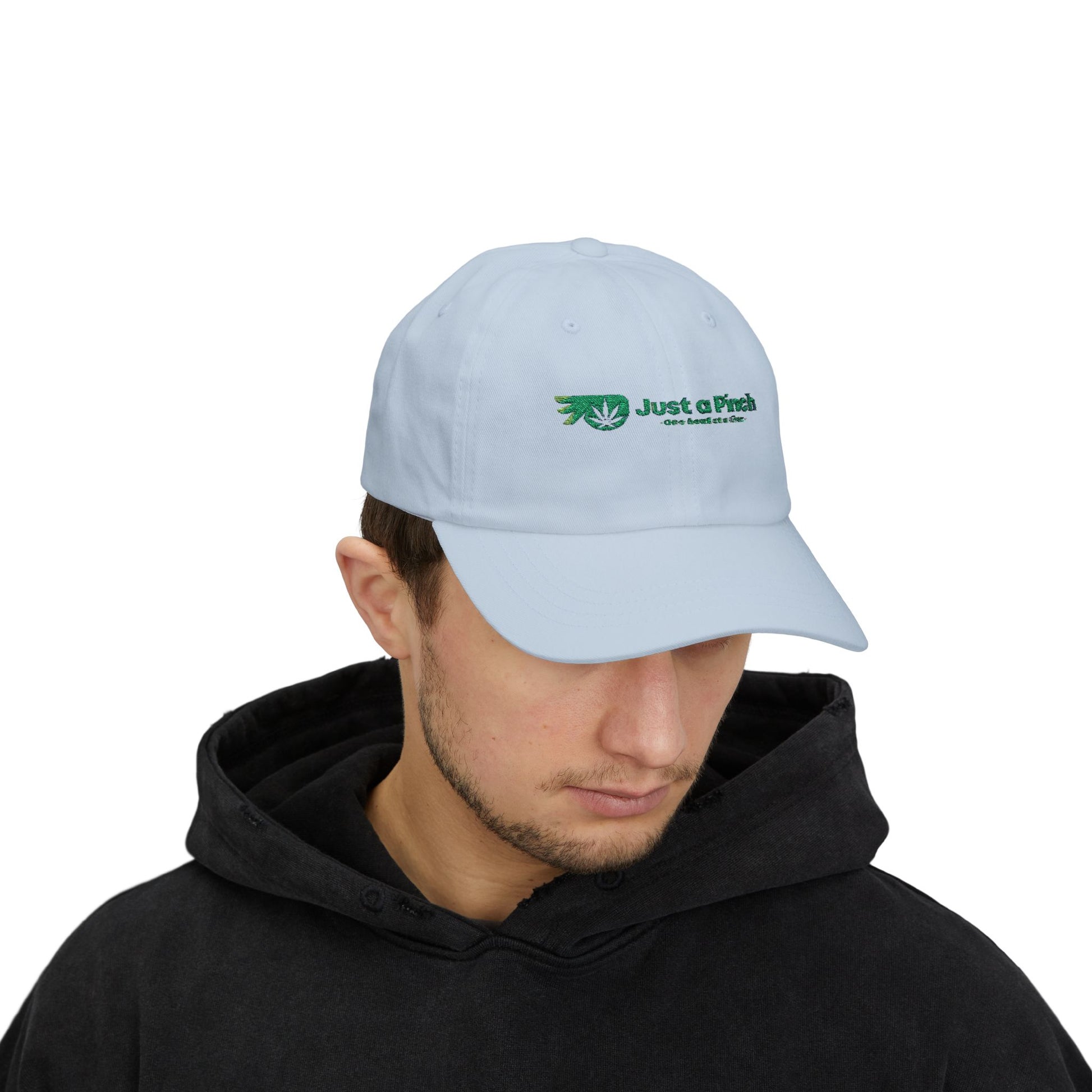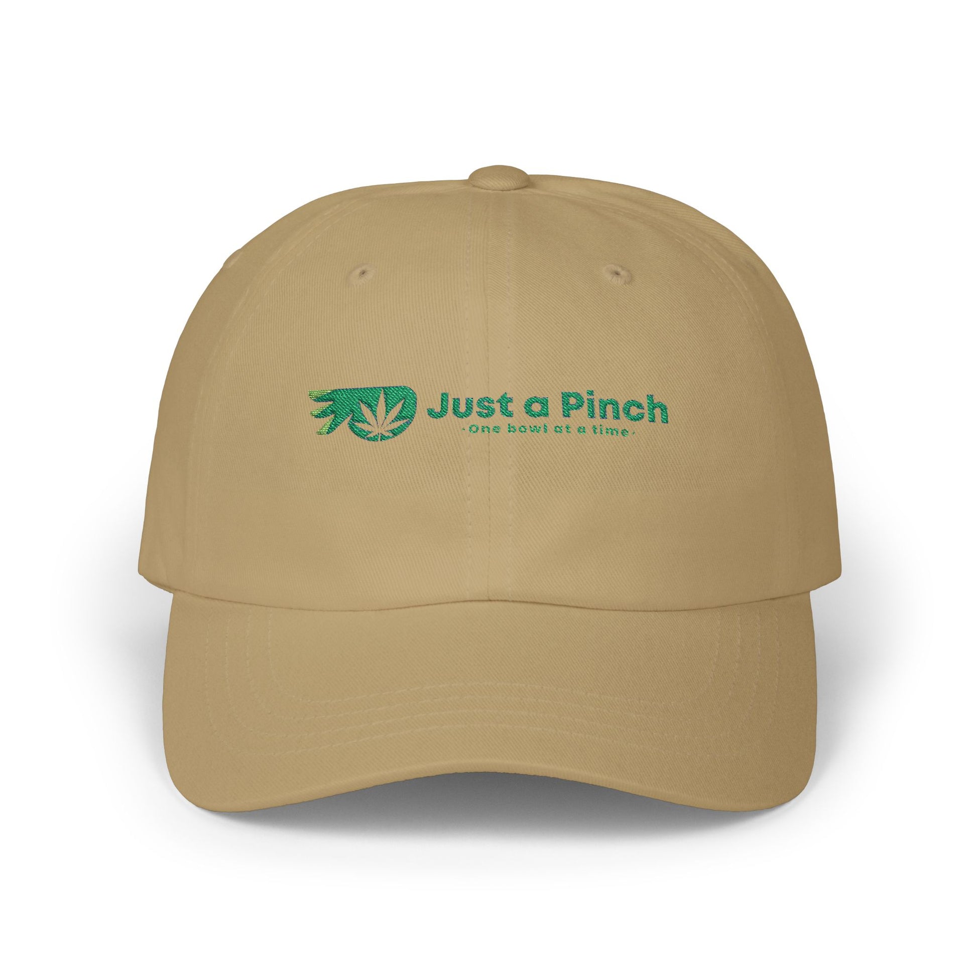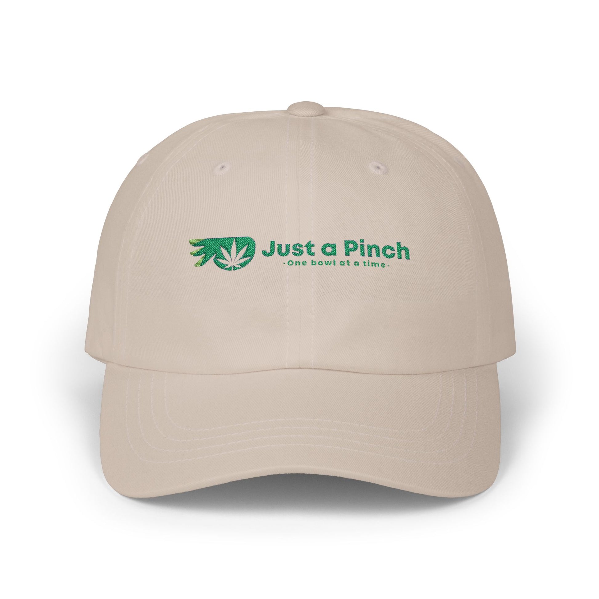 Rep the brand with the official Just a Pinch logo hat — clean, comfortable, and made for daily rotation. This unisex adjustable cap features our embroidered logo front and center, offering a low-key flex for fans of the pinch. Made from durable cotton with a curved brim and buckle strap back for a custom fit. Perfect for sesh days, errands, or anything in between.
